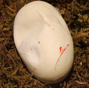 These two images taken on 26th March show the egg size of white lips compared to Green tree python eggs (smaller of the two). In the second image you can see the questionable white lip egg starting to go bad after three weeks.